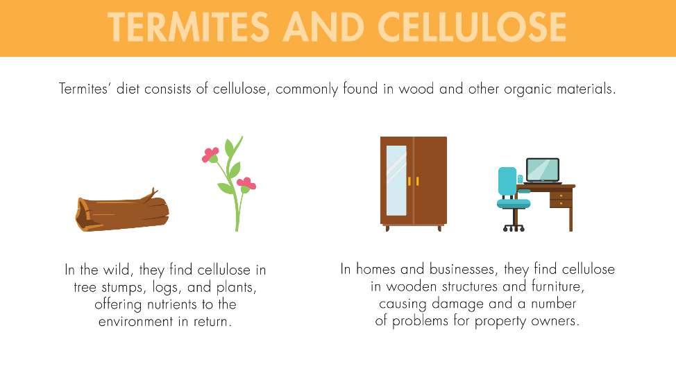 Termites are called “silent destroyers” for good reason. Their tendency to sneak onto your property undetected makes them difficult to eradicate. They feed on cellulose-based plant material – one of the most abundant substances in the world, commonly found in our homes and businesses. Cellulose is found in wood, carpet, insulation, and a myriad of other building and decorating materials. It’s hard to imagine an insect eating wood, but termites use a special bacteria to turn cellulose into digestible sugars.